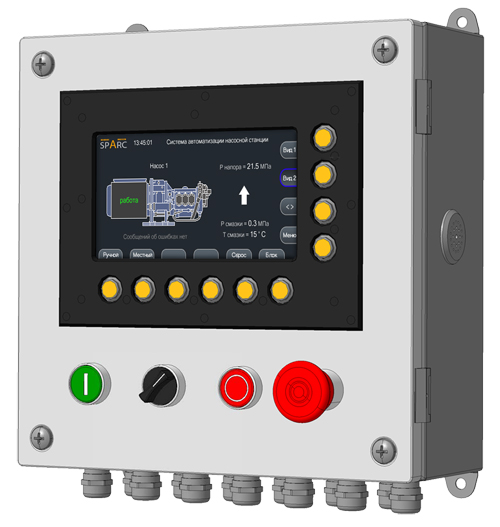 Пульт управления PCmain представляет собой стальную оболочку (степень защиты от внешних воздействий IP54) с клавиатурой из 10 клавиш, 7-дюймовым цветным TFT-дисплеем и набором электронных блоков. Пульт позволяет управлять работой технологического оборудования. Вся информация от датчиков, установленных на объекте управления, отображается на цветном TFT-дисплее и сохраняется в памяти для дальнейшего анализа и ведения статистических данных. Все данные и параметры работы оборудования можно просмотреть как на самом пульте, так и передать на поверхность по модемной линии связи или при помощи USB-флеш накопителя.